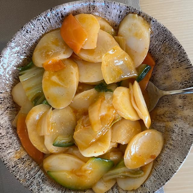 Ottimi gnocchi di riso, non sempre è facile trovarli buoni. Rispetto ai classici, c’è solo l’aggiunta della salsa piccante che però non è troppo piccante per i miei gusti. Il piatto è buono e abbondante. Sicuramente il prezzo è più alto rispetto ad altri ristoranti cinesi ma i sapori sono nettamente diversi