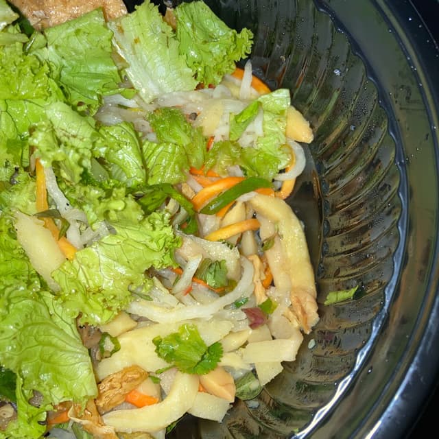 This place rocks! Huge #vegan section in their menu 🌱 #vietnamesefood This was their #bamboo shoot #salad 🥗 with loads of #veggies, super flavorful and dense #tofu, fried #beancurd pieces and fresh #herbs. Also served with a great somewhat #spicy #sauce, fried #shallots and fresh #lime! Every bit was a flavor explosion 💥
