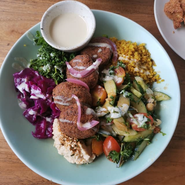 The tabbbouleh was so good with a moutain of parsley ! Houmous good as well. But the the falafel was too dry