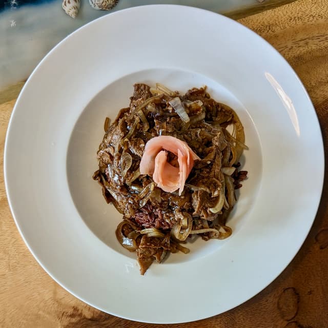 @Nextmeats #nextmeats gyudon soy 'beef' slices and tender sweet onion simmered in kombu. Virtually indistinguishable from the real deal in terms of taste and texture! Nicely garnished with pickled red ginger arranged like a rose, which also offered a refreshing break to the gyudon. Choice of brown rice or white rice available~ P.S. I think it would be cute to have #onlyeg vegan poached egg or raw egg yolk added to this dish too! (Alliums can be removed upon request, $16.80) #sgvegan #japanese