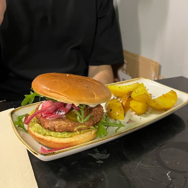 Eva3 days agoSee TranslationBuenísima! De estilo mexicana, la carne es beyond o similar, lleva jalapeños y guacamole. Estaba increíble. El ambiente es acogedor, hay que pedir en barra. #veganmadrid #veganspain #veganburger #govegan0