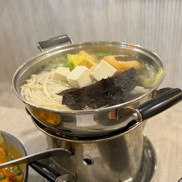 Clear soup hot pot. Ingredients are mainly plant-based with tofu, seaweed, mushroom and cabbage. Tasted clean and simple, good for those looking for something plain. #veganhotpot #eatyourveggies #steamboat