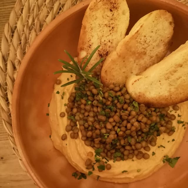 vmarangoni17093 years agoSee TranslationHummus molto buono e ben presentato. Il ristorante punta alla qualità proponendo pochi piatti, purtroppo tutti di carne o pesce ma su richiesta preparano degli ottimi piatti vegani. Meglio avvisare con anticipo 🤗 Ps: il locale è una coccola ❤️0