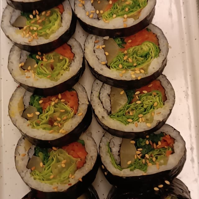 Buonissimi questi kimbap alle verdure; uno dei pochi posti dove li fanno senza uovo. Ottimi anche con la salsa agrodolce piccante