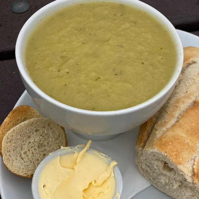 Great location, limited vegan options. But the soup was HOT (not spicy, warm) and a lovely big bowl. £6.90. The baguette was fresh and warm. We had to sit outside as we had dogs, and the birds were relentless, one stole a piece of bread out of our hands! 😝