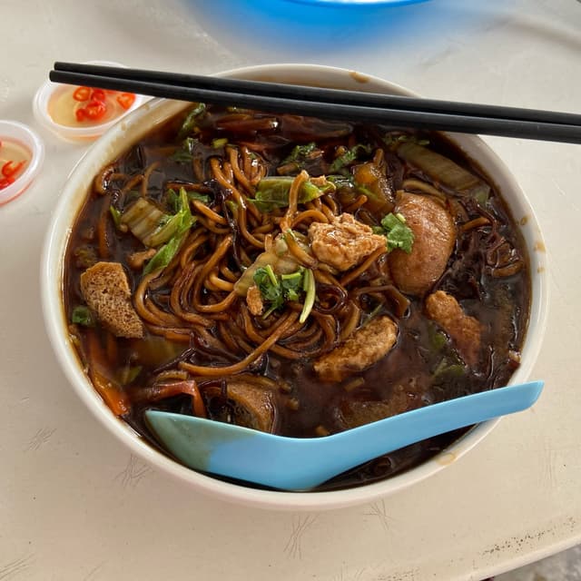 I’d never thought I’d like a soupy #noodle this much before! 🍜 This was @m1tch9i’s order that we took turns swapping and tasting both #forthedollar 🫣 So, the #gravy or #broth or whatever you want to call it- Yeah.. that’s the primary highlight for me of this dish. Not the #noodles nor it’s amazing choice of constituent ingredients but that rich & #savoury flavour you get out of every slurp of this most amazing of #hangoverfood dishes. Sure, we had a late night the day before but really it’s an amazing dish on its own merit even without the #abillionhacks aspect of it all 🤭 That’s RM7 for this bowl by the way, not bad at all!