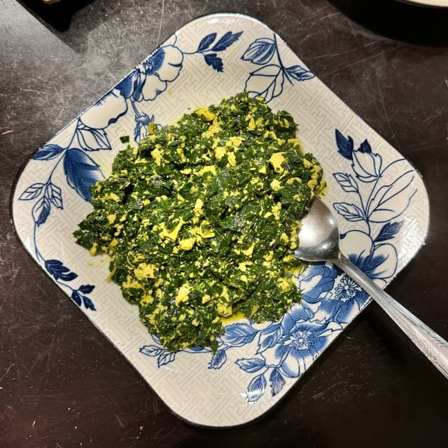 Soft and sweet leaves, stir-fried with a scrambled tofu of sorts in lieu of eggs, alongside some shredded ginger. 🥬🍳🫚 Pleasantly surprised by how tasty this was, despite appearing deceptively simple and homey! (I mean NGL it low-key looked like baby food 👶🏻) TBH I'm usually hesitant to spend money on vegetable stir-fries at Asian restaurants as they don't seem very value-for-money, but no regrets ordering this~ Mani Cai 马尼菜 isn't that commonly available either since it isn't grown in Singapore. Also can I just say, since young I've always liked tender leaves and not fibrous stems, so I was secretly delighted to have a vegetable dish purely consisting of.... 🌿 LEAVES 🌿 ahaha (Allium-free, $15.90) #sgvegan #chinesefood #peranakan #nyonya #alliumfree #wholefoodplantbased #wfpb