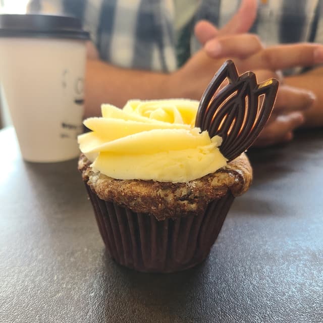 This marbles cupcake was so moist and delicious! The frosting was a vegan buttercream with a chocolate detail.