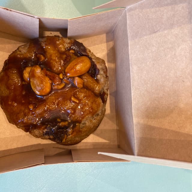 Best cookie ever!!! I really love all the products in this Boulanger, but this cookie is insane.. it seems to be full of vegan “Nutella” and the caramel salted topping is fantastic.
