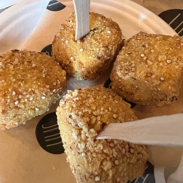 Penso che le mozzarelline in carozza di formaggio di anacardi di hug sono uno di quei piatti che anche se non hai molta fame per golosità lo ordini ancora e ancora. Io spesso li prendo al posto del dolce.... I formaggi di hug sono di certo i migliori formaggi vegetali che ho mangiato in vita mia. La panatura stupenda e filano pure.. Insomma il difetto più grande che hanno è che non hai il tempo di guardarli che sono finiti. Se passate a monza è una tappa obbligatoria.