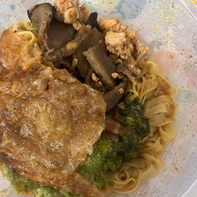 Yo. This is SO GOOD. The noodle bite is perfect with tons of mushroom and omnimeat. It’s spicy, savoury, a little salty, acidic from the vinegar. Dear lord it’s delicious, my mom did NOT let me take a photo without her digging in, so pardon the blur photos 🥲 and it’s $4.50