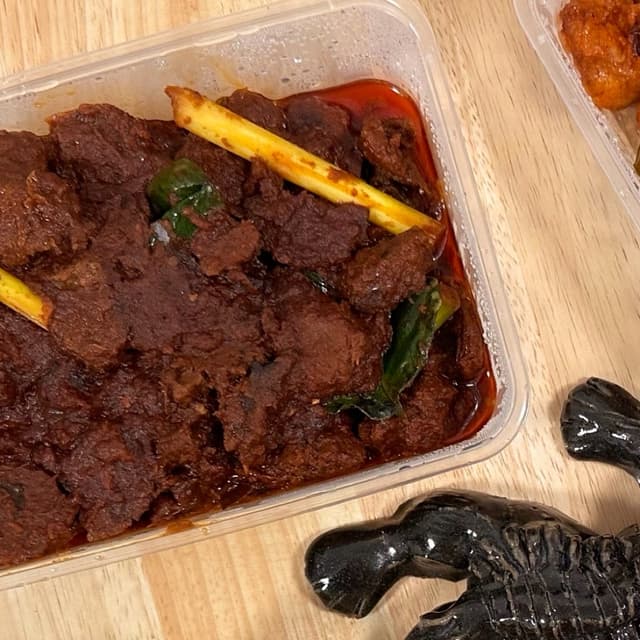 Finally a competent #rendang 👏 Tastes a little #masakhitam or #manchurian which was interesting for sure but it’s knocking up the right alley in any case 😋 It’s super #gao so I’d pair it with a lighter grain, maybe #jeera rice instead of #biryani 🍚 It’s by no means #spicy if that’s a concern for you but overall just perfectly indulgent. The #mutton they used seems to be the same as per their #briyani and again it makes a perfect case for it because in spite, they both tasted so different. It’s got #lemongrass & #kaffirlime, the latter definitely being non-negotiable in any rendang I’d make so they’re definitely scoring points here. Only nitpick is that it doesn’t taste as coconut forward as I’d like — Malaysian rendang usually having #kerisik / #coconut shavings but it’s really a matter of preference and choice for the end result desired 🥥 This gets a stamp of approval from me 👍 #veganisnotscary #tiledreview