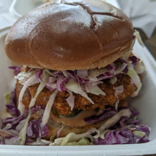caseyveganforlife4 years agoSee TranslationTheir chicken patty is incredibly thick juicy and crispy! This had a nice spicy kick to it!0