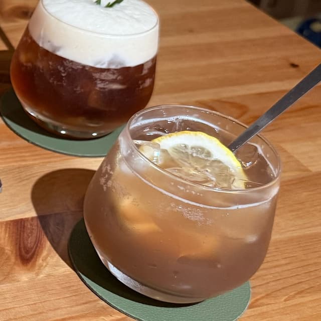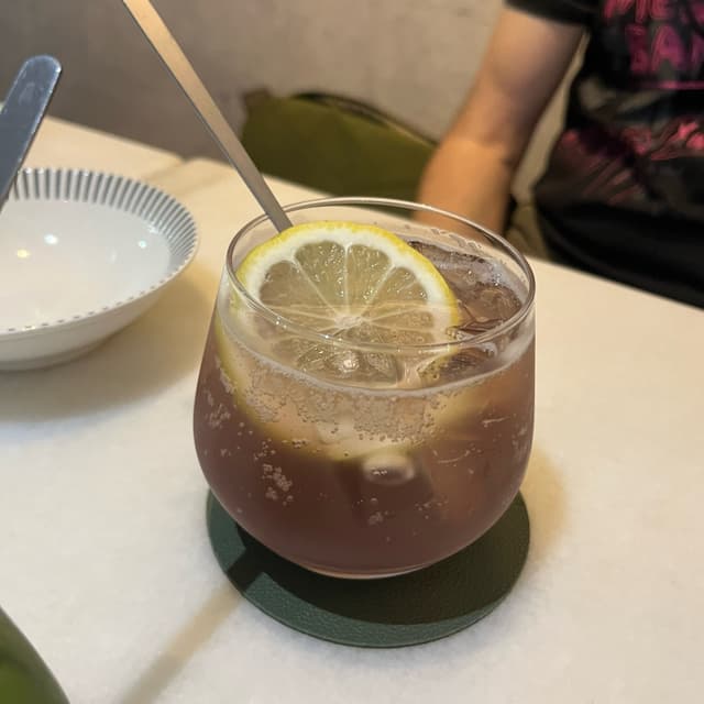 OMG! This is my favorite! So zesty and slightly bitter. It contains lemon ginger tea, grapefruit, mint and soda.