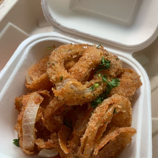 First vegan Onion Rings and I did not realize how much I missed these things! Seasoned, crispy-fried breading around a beautiful ring of onion… what more could you want? A little confused about the dipping side of ketchup (???) but it’s not like they need anything extra anyway (plus it’s not really too bad with the ketchup either!). 🧅 #saveveganrestaurants 📍Oh My Soul