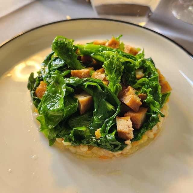 consuell2 years agoSee TranslationThis is a appetizer made with a base of orzo, and on top smoked tofu and slightly cooked broccoli 🌿0