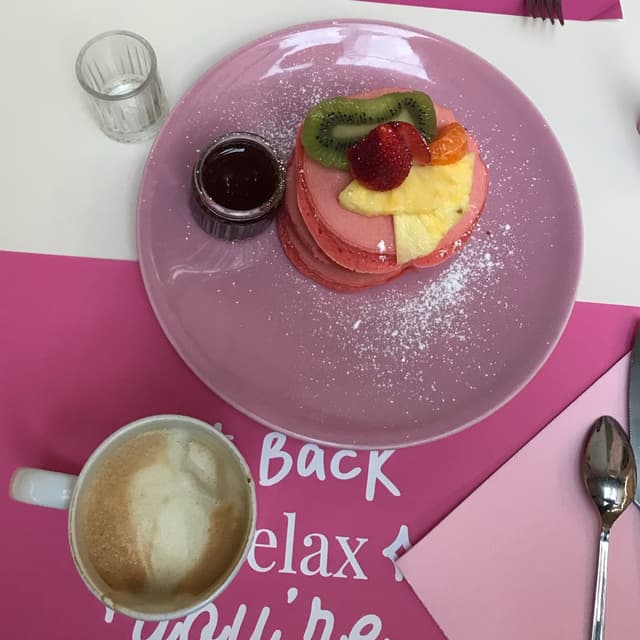 Winnie the Pooh and Piglet reviewing vegan plates2 years agoSee TranslationPancake super soffici gustosi e delicati, abbinato con sciroppo d’acero e frutta mista, e cappuccino di soia.0