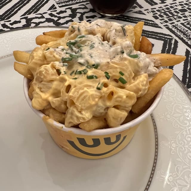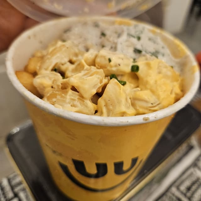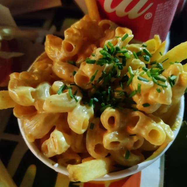 El cheddar estaba medio gomoso y la salsita blanca de arriba quedaba medio rara, pero si te gustan los Mac & cheese es una excelente opción.