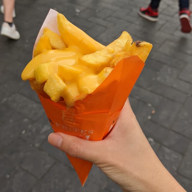 when in amsterdam, eat fries 🍟🍟🍟 the classic fritesauce is like a light mayo (hence not vegan) but the cheese sauce is! 🧀