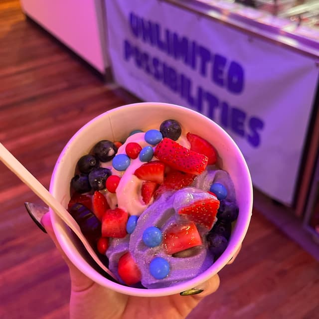 Violet1 year agoSee TranslationSo unique and flavorful! Nut free, pecan praline flavor. Rich and creamy! Blue colored soft serve! Must visit location. 💙💙💙💙💙🍦🌀😍 #dallasvegan #dallas #vegan #softserve0