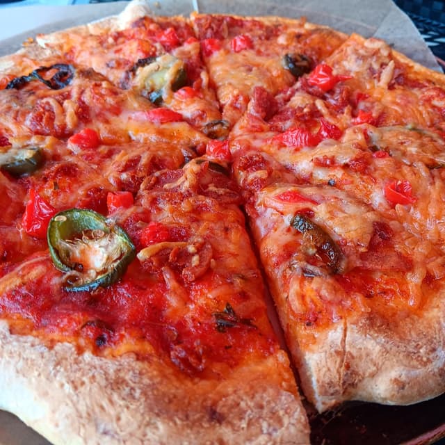 Delicious pizza. Took half of it home for breakfast the next day. It was spicy in a flavorful way, not an over the top kind of way. It wasn't overloaded with toppings which is nice. But it could have used a bit more pepperoni. I'll definitely get pizza from here again.
