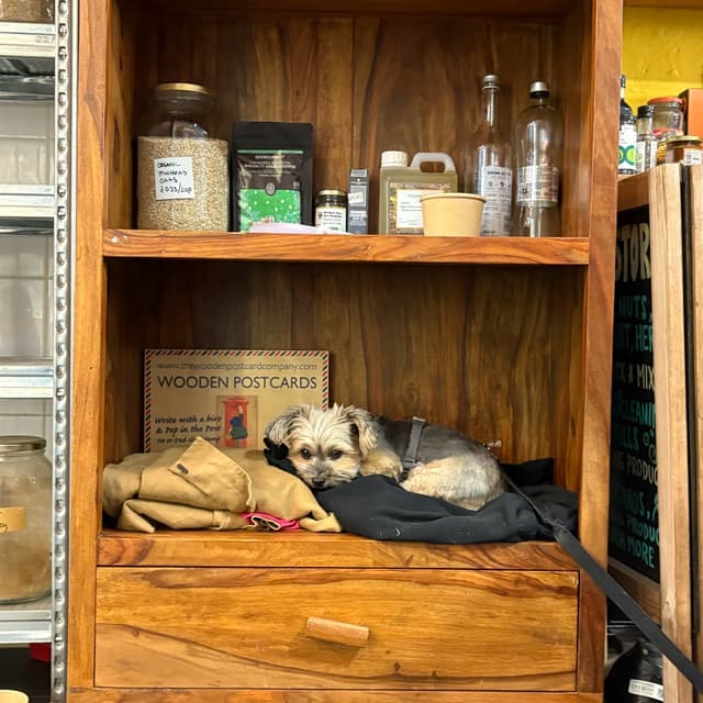 Vegan cafe and zero-waste store run by lovely family. Their food is amazing food is with a huge variety, and they have plenty of drinks and sweets too. They are really warm and welcoming too. Be sure to say hi to the resident puppies too.