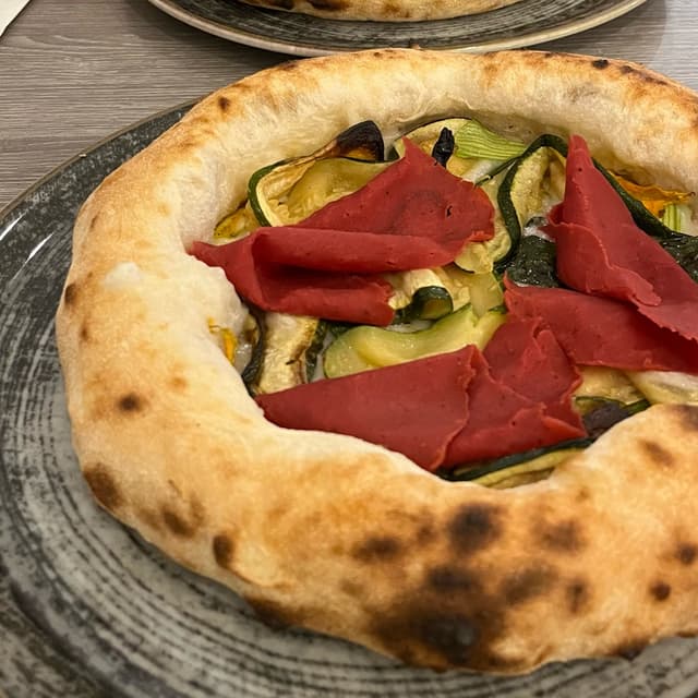 veg🥟1 year agoSee TranslationPizza con mozzarella vegetale, zucchine, fiori di zucca e prosciutto crudo vegan. Gusto molto delicato ma buonissima anche questa!0