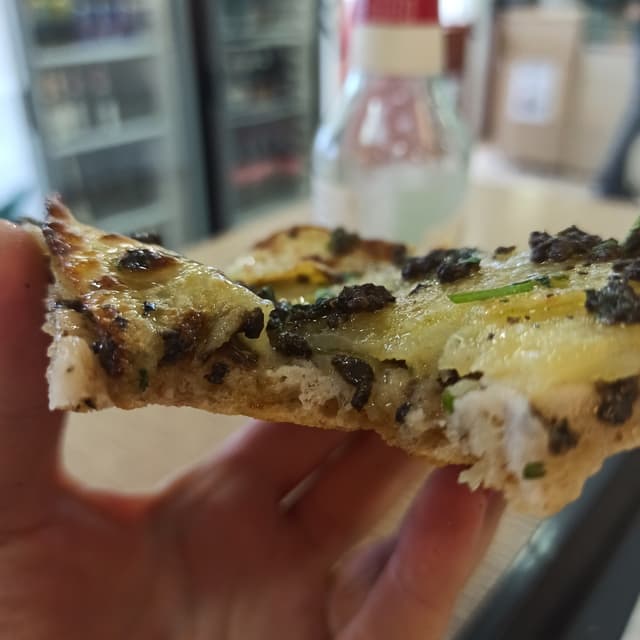morgymur2 years agoSee TranslationOttima pizza al taglio con impasto di farine miste integrali, farcita con patate fughi e crema di tartufo. L'unica pizzeria in tutta questa zona, con una scelta vegan così ampia e di alta qualità.0