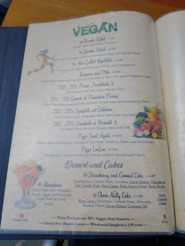 Lots of vegan options in a special vegan page on the menu. The pizza loulou tastes great - capers, almonds onion, cherry tomato with a ruccola base. 2 courtyards and a terrace as well as indoor tables - great restaurant.