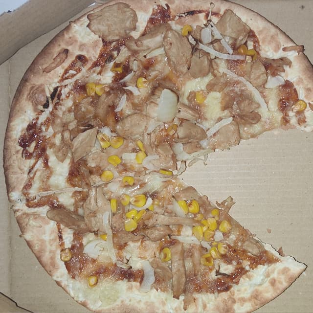 Muy posiblemente la peor pizza que he probado en mi vida, me duelen los 13€ que me ha costado (sin descuento son 26€ una pizza mediana, flipa) Ponía masa fina, pero es que una cosa es masa fina y otra una oblea, terrible. No me ha sabido mucho a barbacoa si quiera, estoy muy decepcionado. Si os apetece una pizza barbacoa, la de telepizza está mucho mejor y es más barata. #pizza #dominos #norecommendation
