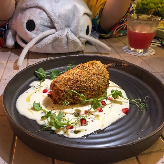 It seems not even Ploom could resist the enticing aroma of this #pepper ☺️ It’s also one of the more impressive #veganoptions from this omnivore establishment, so could you blame the poor thing 🥹 #isopodsofabv This #maindish is essentially a #stuffed #poblano 😙 You got the savouriness from the cauliflower as well as the mole 😋 There was a silky mouthfeel to the #cactus that was caught in between my favourite sweet and savoury spot 😛 With the corn and pomegranate, it all made for a texturally interesting bite 😝 Not to mention, the fun burst of sweetness and a little sour! The bite had buoyancy, fibre, mush, and crisp from the perfectly #deepfried pepper itself 🤪 Though I thought this dish was phenomenal, I can’t in good conscious say it’s worth $28 😗 If you’re out on the town, looking to spend it up, why not? Just watch your isopods 🥸