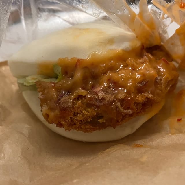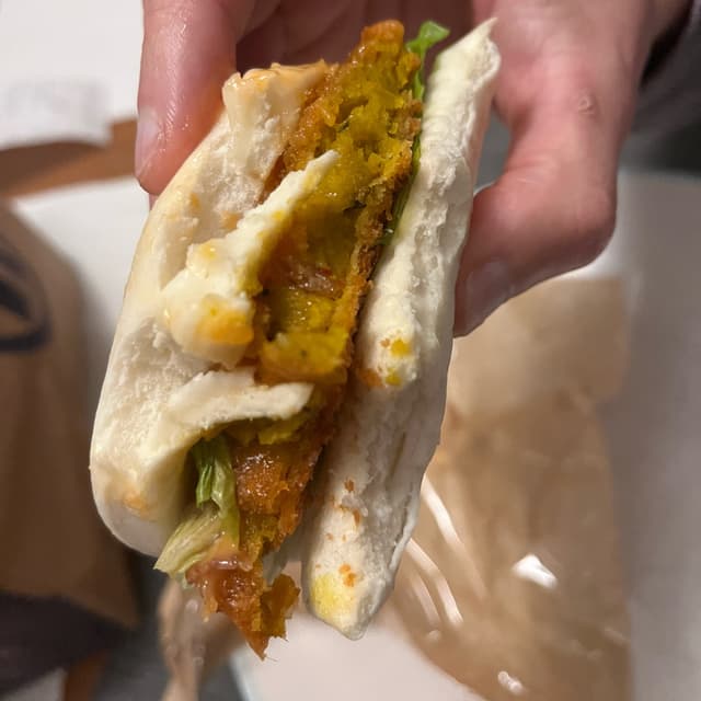 🇯🇵🎃 #hotmess for sure as well as #sweetdreamsaremadeofgrease. I think @stevenneoh might appreciate this one. 🙂These #pumpkin #baobuns was massive. My partner loved it so much he got another one the next day. There’s a #sriracha 🌶️kind of mayo I think. Or maybe it’s a sweet chilli? It’s also got some lettuce. I think I prefer the wagamama Bao buns with more herbs but this is probably twice the size. #japanese #veganproud #veganlondon #londoneats