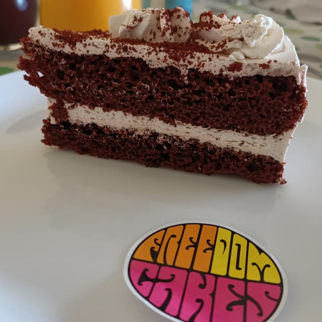 I'm not the biggest fan of chocolate #cake, but this one was surprisingly good! The sponge was moist and fluffy, and the creamy frosting wrapped it all together! We ordered it as part of a meal deal combo in Freedom Cakes, a 100% vegan diner in #madrid, Spain. 🍫 #redvelvet #redvelvetcake #veganisnotscary #abillionlove #dessert #sweettooth #veganspain #spain #madridvegano #madrid #veganosmadrid