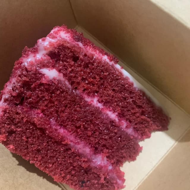 I ordered a whole cake for my birthday last year and everyone loved it. It’s not as dense as an original red velvet cake, but it’s super moist and delicious!