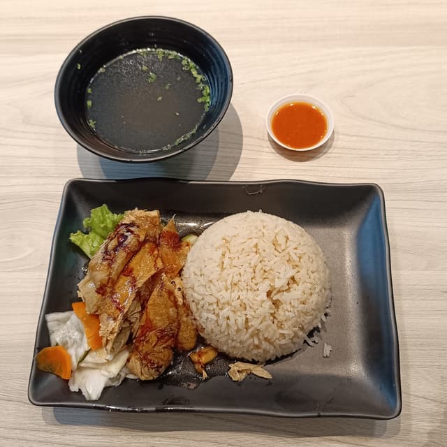 Nice crispy beancurd skin and tasty sesame oil rice. Pickles were a little too sweet for my taste. The chilli was rather hot, not bad. $5ish for this.