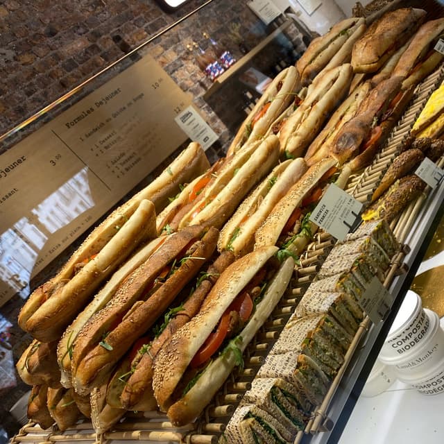 No llego a la foto, pero probe el meditarraneo y el fermier, el meditarreaneo estaba increíble. Los panes de este lugar son 10 puntos.