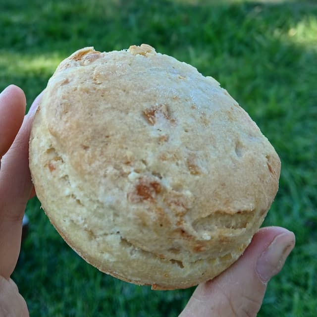 ladylu10 months agoSee TranslationScon de queso. Porción enorme, muyyy rico. Amigos no veganos les encanto. Un poco caro peroo lo re voy a volver a comprar. Bien esponjoso, para mi el sabor a queso estamuy bien hecho. #scone #quesovegano #veganscone0