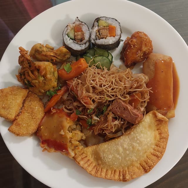 Este restaurante é maravilhoso, mas cheguem cedo! Eu cheguei faltando mais de uma hora pra fechar e já tinha quase acabado a comida. Peguei vários restos e montei este prato. Estava tudo delicioso, sério! Muito bom. Destaque especial pro sushi e pro rolinho primavera, que normalmente são mais ou menos em buffet, mas estavam perfeitos! Achei o preço super justo. Recomendo demais! #asiatico #comidaasiatica #asianrestaurant #asianfood #veganasianfood #almocovegano #almoco #sushi #sushivegano #vegansushi #pastel #veganisnotscary