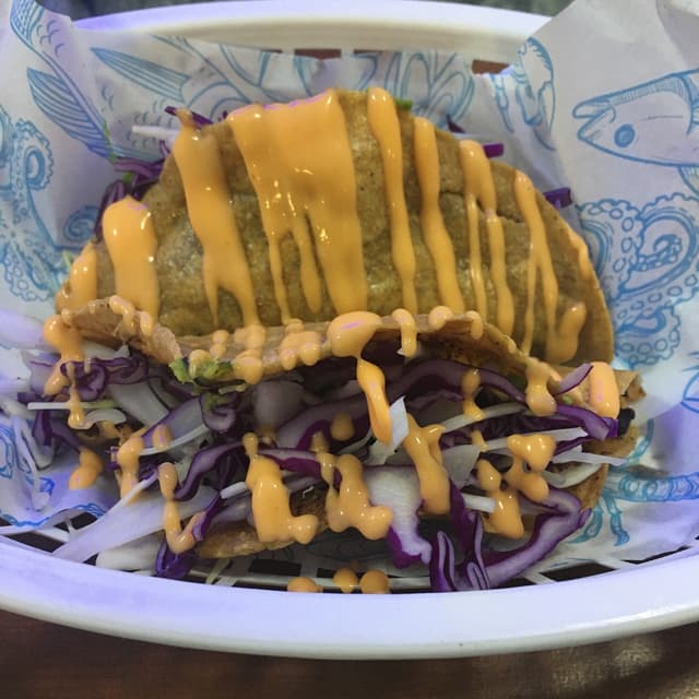 Deliciosos tacos de setas. La verdad es que se come muy rico en el lugar, tienen precios accesibles y la atención es muy amable. Todo su menú es con temática de sabor del mar y como ya tiene mucho que no como anymales marinos tampoco, no sabría decir, pero fui con mi familia que no es vegana y comentaron que lo que pidieron “sí sabía como a pescado”.