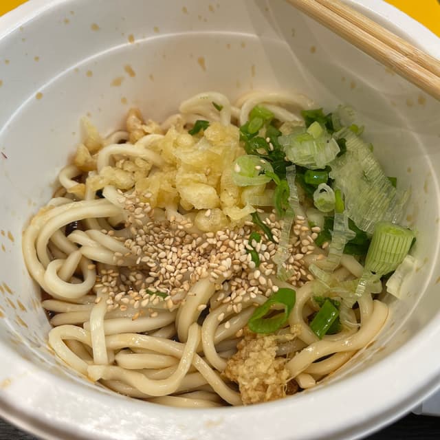 🍜🇯🇵 It’s tough for me to pass this place by without stopping in for something. This #japanese #udon #soup was nice with Green onion, sesame seeds, and bits of crispy tempura. It had some ginger flavor as well. It really needs some protein though. I could have added inari for £2 but was trying to be thrifty. Not sure I’d get this again. #noodles This chain has so many #vegan options. It’s great!
