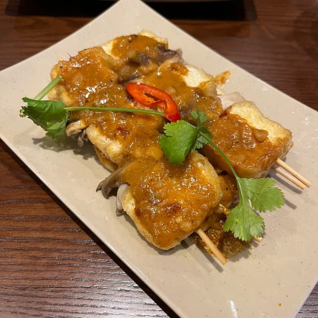 Buddha Taste is an authentic Vietnamese restaurant serving vegetarian and vegan food. The menu is written in a way where everything is vegan unless stated otherwise. For starters, we got these skewer of tofu and oyster mushroom. It was topped with coriander and their homemade satay sauce. The tofu and oyster mushroom were quite fresh with little extra cooking however I prefer it when it's grilled like yakitori first. The satay sauce is always the best part of the dish, this sauce was a little thinner than I'm used to but it was still tasty and I appreciate the homemade-ness of it. This was £7.