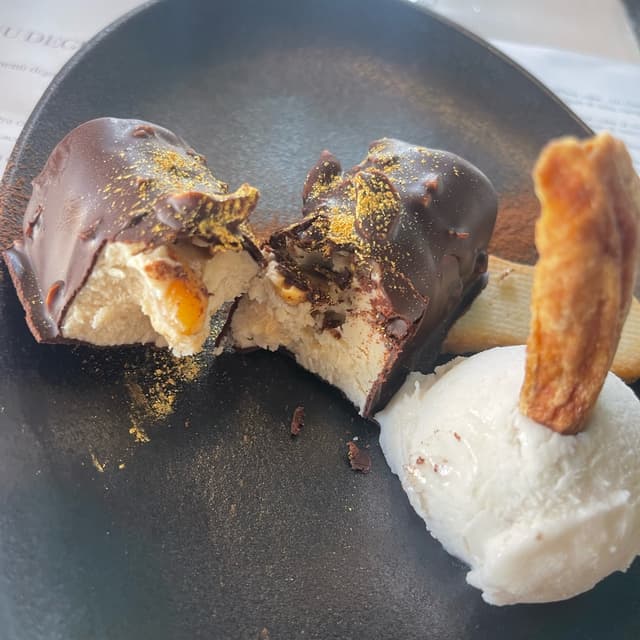 Gelato gusto Snickers, abbastanza simile all'originale. Molto buono e bello l'impiattamento.