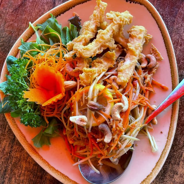 Som tum aka green papaya salad, with crispy deep fried calamari. I like that this dish now comes with the option to add calamari to make it a more substantial meal.