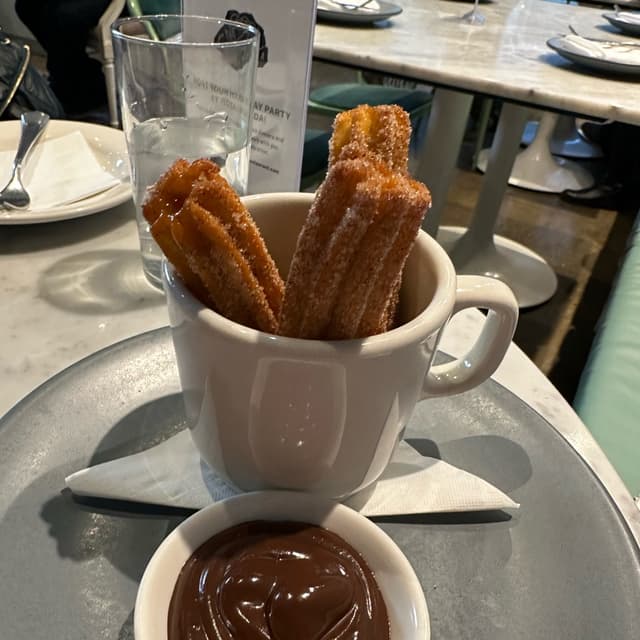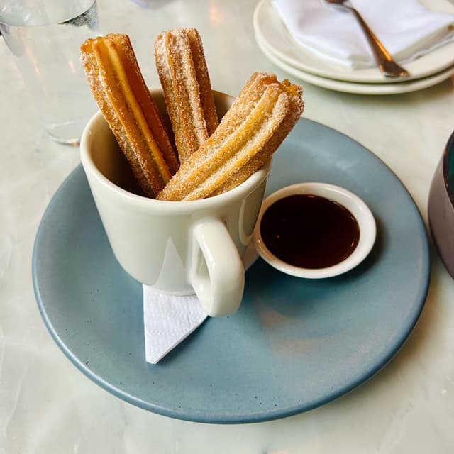 Oh hellooo beautiful 😻 Just a few perfect, hot, sugary, cinnamony churros stuffed with sweet dulce de leche and served with warm chocolate sauce for dipping. These churros were perfect, not too crunchy or chewy, just the perfect amount of crunchy-chew. I loved how warm they were when they arrived at the table 🥰 If I could just have a mug of these for breakfast every morning that would be great thanks! 🤞🙏✨✨✨