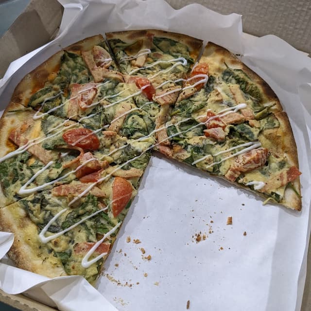 While the pizza was indulgent, I didn’t feel guilty eating the whole thing. The homemade ricotta is standout, especially in comparison to many plasticky “cheeses” out there and the “ham” had a great taste. The dough is very thin and light. I do wish there was more.