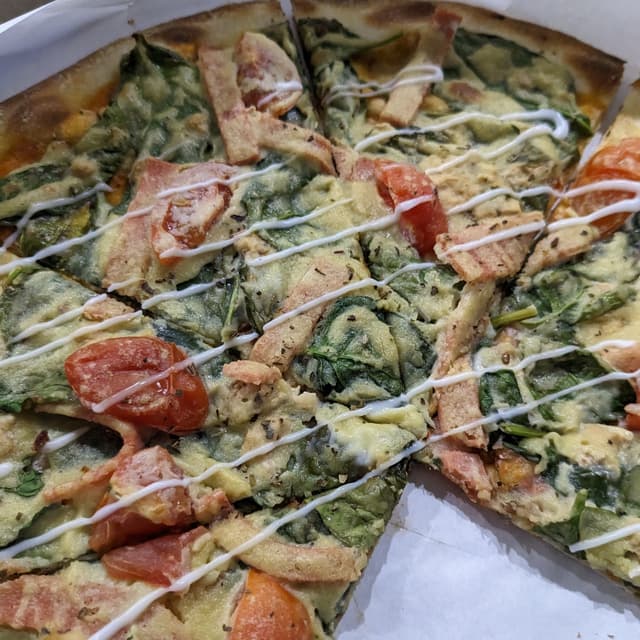 A refreshing new addition to WS's menu, featuring a bed of generous fresh spinach drizzled with vegan cheese, tomatoes and the restaurant's staple soy ham.