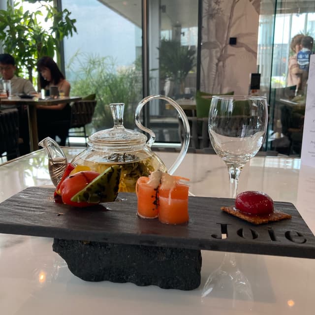 Few weeks ago I treated myself to a birthday dinner at this place. I didn’t love it here honestly. Service was lacking for the price paid, food was average in taste but looked pretty. This starter platter was okay. The skewer had raw tasteless bell pepper and tomatoes 🍅 The vegan salmon was okay, but rather without taste. The sphere on the cracker was nice! #finedining #singapore