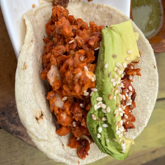 Pedí una orden de tres tacos ($85) de chorizo, barbacoa y chicharrón.