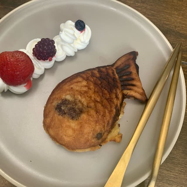 Muy rico es como un hotcake relleno con nutella. Y me encanta la forma de pez lo hace ver muy lindo. #vegandesserts