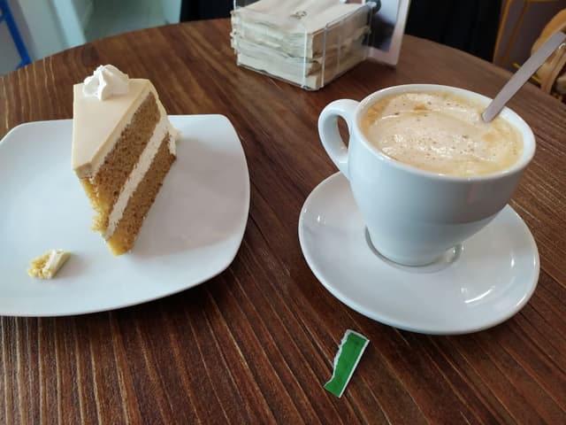 Tarta de chocolate blanca, buen sabor aunque demasiado dulce para mi gusto.